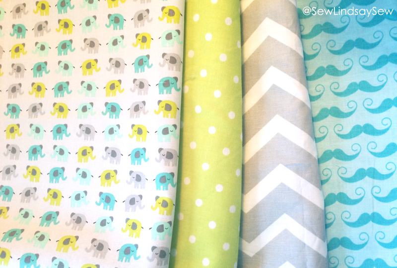 I’m proud of my fabric selection for this project – I think it might be one of my favorites! Obviously, the mustache fabric was the most limited selection, so I had to work around that one first. I ordered it online and took a swatch to the fabric store to find the rest. Yes, I was the crazy lady with a swatch of mustache fabric in her purse.