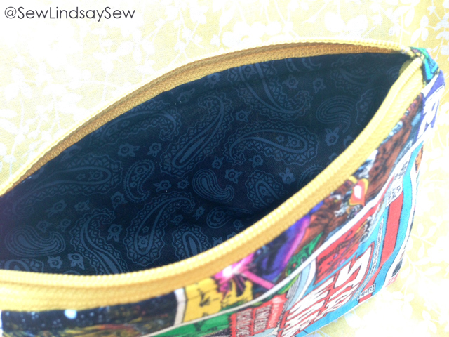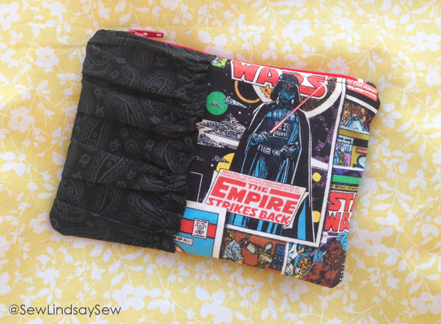 The Star Wars print, which was supposed to look like a bunch of comic book covers, had a rectangular shape on it that looked almost exactly the size of the zipper pouches I like to make. So I had to try it.